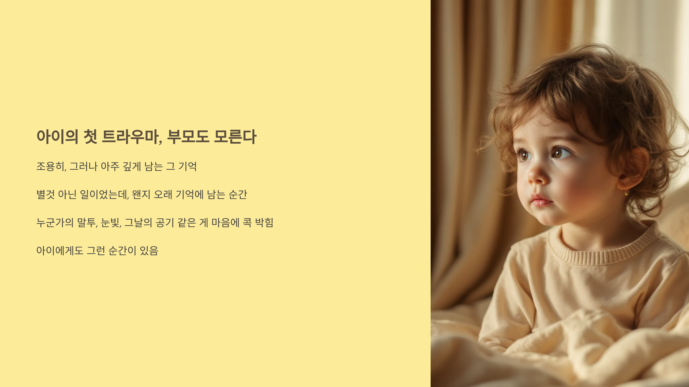 아이의 첫 트라우마, 부모도 모른다 → 조용히, 그러나 아주 깊게 남는 그 기억