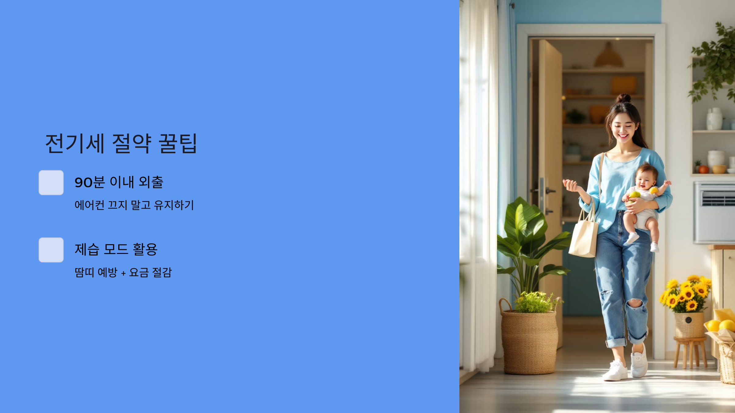 1. 90분 이내 외출이라면 에어컨을 끄지 마세요